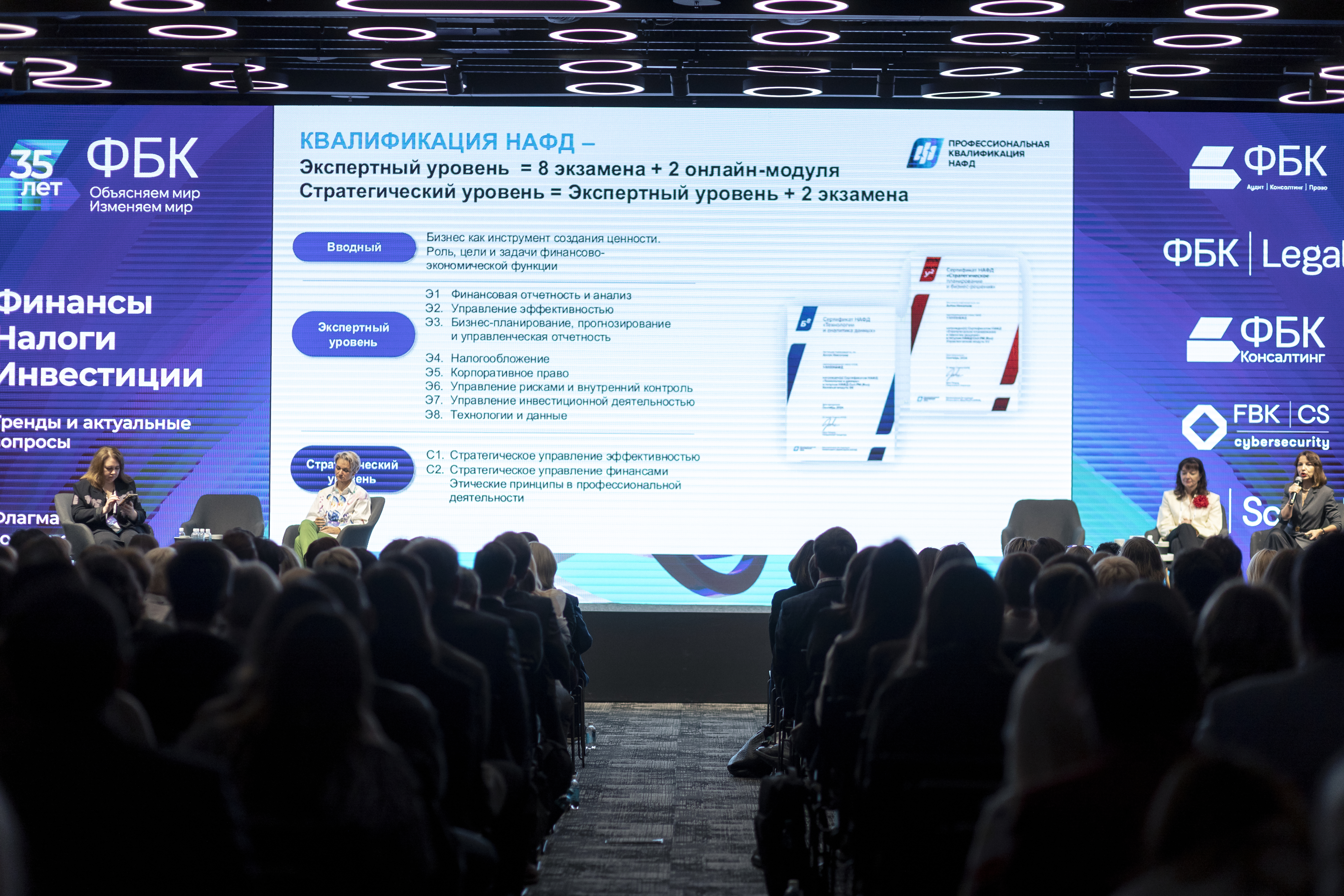17 октября Вера Стародубцева, директор Национальной ассоциации финансовых директоров (НАФД), приняла участие во флагманской конференции ФБК «Финансы. Налоги. Инвестиции. Тренды и актуальные вопросы». В рамках доклада «Национальная финансовая квалификация – новый этап развития финансовой профессии в России» Вера Стародубцева рассказала о квалификации НАФД, работе учебных центров, предстоящей зимней сессии.