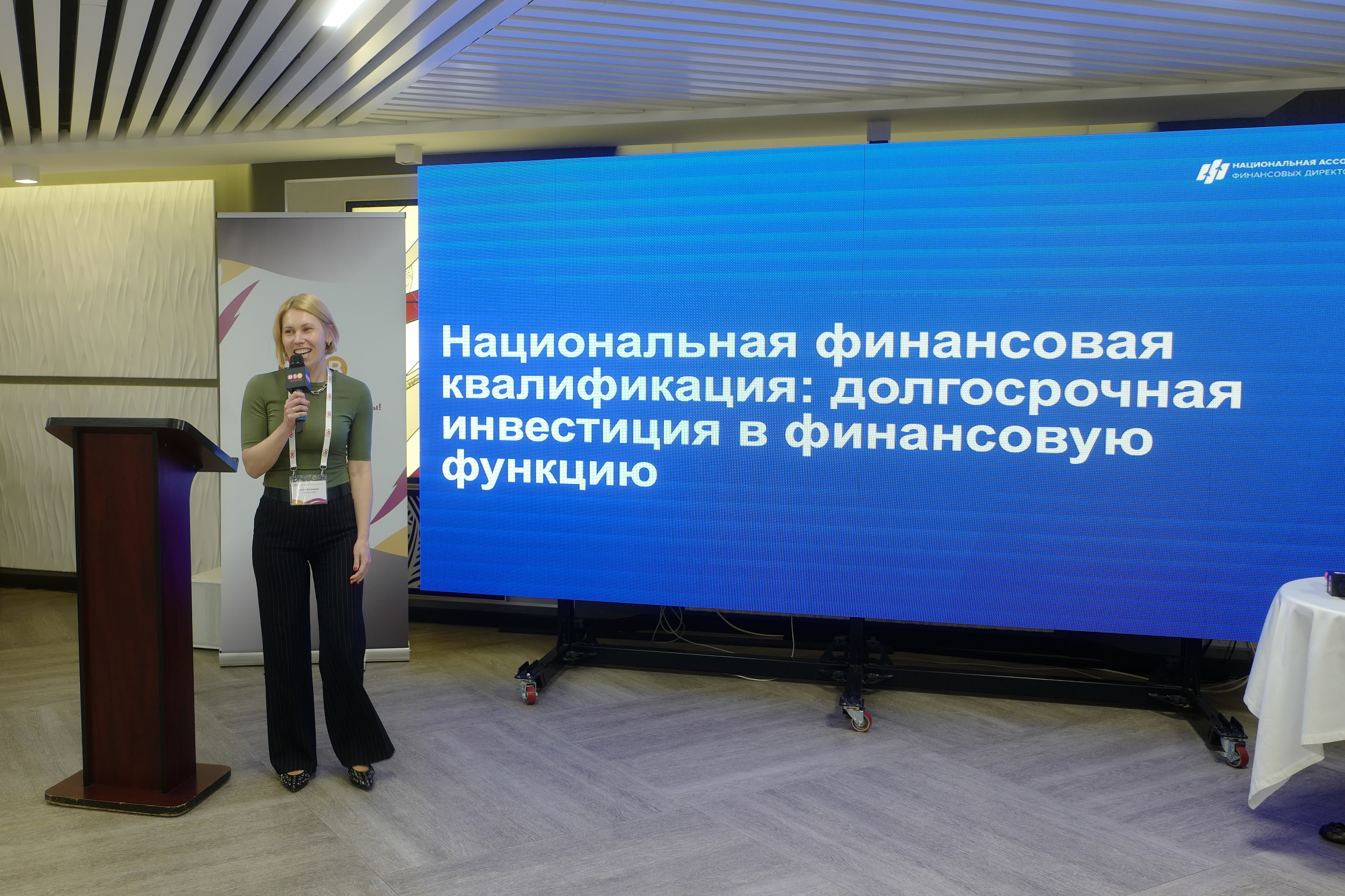 Среди пятнадцати экспертов, поделившихся опытом, ярким акцентом стало выступление Юлии Артемьевой, руководителя направления «Газпром нефть», амбассадора НАФД. Юлия рассказала, как профессионльная квалификация НАФД становится эффективным инструментом развития и повышения компетенций специалистов финансовой функции. Тема вызвала оживленную дискуссию и вопросы из зала, что еще раз подтверждает актуальность и востребованность квалификации НАФД в условиях трансформации производственного сектора и экономики в целом.